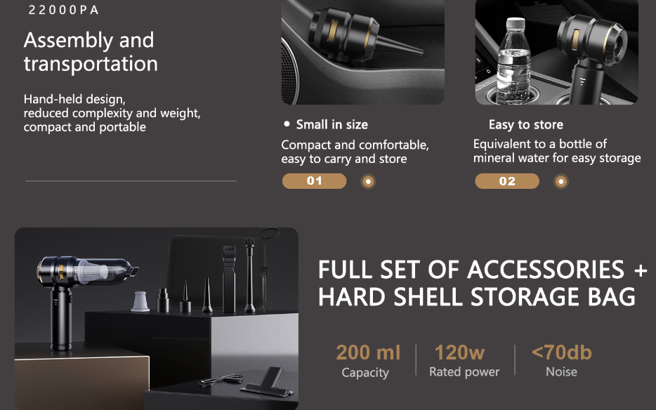 Lyiazsoy Car Vacuum Cleaner,22000PA High Power Mini Vacuum Cleaner,Rechargeable Handheld Vacuum,Portable Cordless Compressed Air Duster Air Blower for Car Home (goldblack)